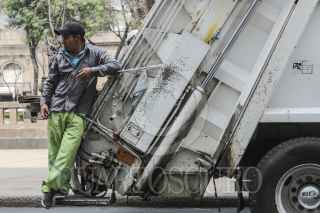 MEXICO, D.F., 23FEBRERO2014.-Un trabajador del Departamento de Limpia recorre el Paseo de la Reforma en un camión de basura. Todos los dìas la Ciudad de México produce miles de toneladas de basura, las cuales son llevadas a los rellenos sanitarios de El Milagro y La Cañada, en Iztapaluca, El Bicentenario y Xonacatlán, en Cuautitlan Izcalli y el de Tepotzotlán. FOTO: DAVID POLO /CUARTOSCURO.COM