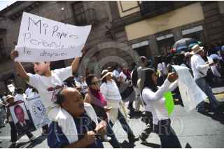 MORELIA, MICHOACAN, 23FEBRERO2014.-Alrededor de 200 periodistas michoacanos marcharon por la avenida Madero para repudiar los asesinatos y desapariciones cometidos en México en la última década. Lo anterior en el marco de movilizaciones similares efectuadas en diferentes puntos del país a convocatoria de reporteros de Veracruz, luego del asesinato de Gregorio Jiménez de la Cruz. FOTO: ALAN ORTEGA /CUARTOSCURO.COM