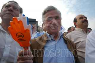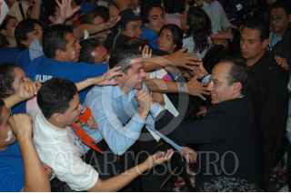 MEXICO, D.F. 04DICIEMBRE2005.- Felipe Calderón Hinojosa, saluda a la gente durante la ceremonia de protesta como candidato del PAN a la presidencia de República. FOTO: Iván Stephens/CUARTOSCURO.COM