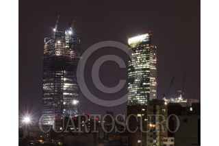 MÉXICO, DF., 25FEBRERO2014.- La luz es el primer y último espectro de una urbe. Dispuestas de frente, la Torre Mayor y la nueva Torre Bancomer, aun en construcción desde 2008, son dos espejos férreos que compiten por la altura. FOTO: MARÍA JOSÉ MARTÍNEZ /CUARTOSCURO.COM