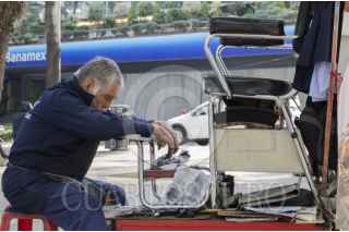 MÉXICO, DF., 25FEBRERO2014.- La profesión que descansa. Un hombre aprovecha el sopor del medio día para dormitar encima de la silla de boleado. FOTO: MARÍA JOSÉ MARTÍNEZ /CUARTOSCURO.COM