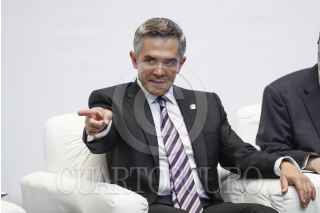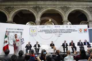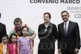 MÉXICO, DF., 25FEBRERO2014.- Miguel Ángel Mancera, jefe de gobierno del Distrito Federal, acompañado de Xavier López "Chabelo" durante la Firma de Convenio Marco de Colaboración con la Asociación Civil KARDIAS que se realizó en el patio del Antiguo Palacio del Ayuntamiento. FOTO: RODOLFO ANGULO /CUARTOSCURO.COM