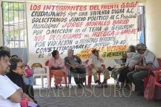 CUERNAVACA, MORELOS, 25FEBRERO2014.- Integrantes del Frente Estatal de ciudadanos por una vivienda digna A.C. realizaron un plantón a la entrada del edificio del Ayuntamiento de Cuernavaca, y declararon huelga de hambre y de pagos a los servicios públicos hasta que no se juzgue al alcalde Jorge Morales Barud. Lo anterior debido a la omisión en el tema de seguridad. Exigieron además castigo al ex alcalde Manuel Martínez Garrigos. FOTO: PATRICIA MORALES /CUARTOSCURO.