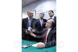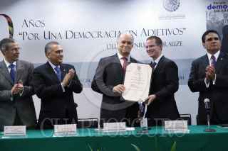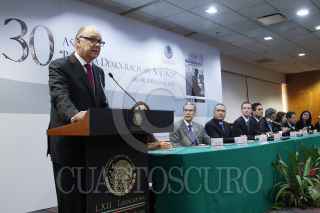 MÉXICO, D.F., 25FEBRERO2014.- Manlio Fabio Beltrones, coordinador de los diputados del PRI y el historiador Enrique Krauze, durante la celebración de los 30 años del libro "Por una democracia sin adjetivos" en la Cámara de Diputados. FOTO: CUARTOSCURO.COM