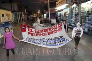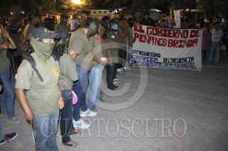 TIXTLA, GUERERRO, 25FEBRERO2014.- Integrantes de la Policía Comunitaria de la Coordinadora Regional de Autoridades Comunitarias (CRAC) apoyados por alumnos de la Normal Rural de Ayotzinapa y habitantes de esta ciudad, marcharon por las principales avenidas para denunciar que este lunes por la noche presuntamente policías municipales agredieron a un grupo de comunitarios, cuando intentaban detener a tres presuntos delincuentes que huían en un automóvil. La manifestación termino en el palacio municipal en donde realizaron un mitin. FOTO: JOSÉ I. HERNÁNDEZ / CUARTOSCURO.COM