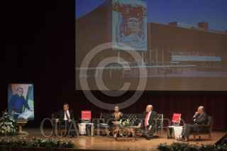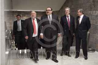 MÉXICO, D.F., 25FEBRERO2014.- Javier Ramírez Campuzano, hijo del desaparecido arquitecto Pedro Ramírez Vázquez, durante la presentación del libro "Arquitectura" en el Museo Nacional de Antropología, el cual aborda todas las obras del legendario creador de edificios como el Estadio Azteca, Basílica de Guadalupe y Cámara de Diputados. FOTO: MOISÉS PABLO /CUARTOSCURO.COM