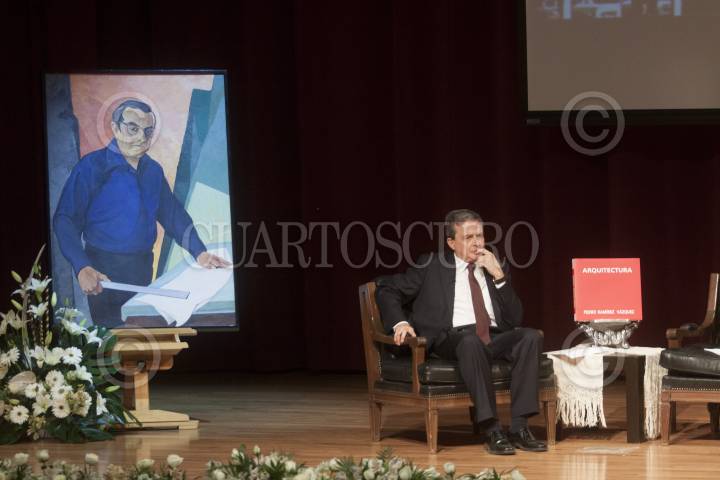 MÉXICO, D.F., 25FEBRERO2014.- Javier Ramírez Campuzano, hijo del desaparecido arquitecto Pedro Ramírez Vázquez, durante la presentación del libro "Arquitectura" en el Museo Nacional de Antropología, el cual aborda todas las obras del legendario creador de edificios como el Estadio Azteca, Basílica de Guadalupe y Cámara de Diputados. FOTO: MOISÉS PABLO /CUARTOSCURO.COM