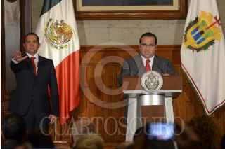 XALAPA,VERACRUZ, 25FEBRERO2014.-El gobernador Javier Duarte de Ochoa, acompañado por secretarios del gabinete, tomó protesta a Luis Ángel Bravo Contreras como Procurador General de Justicia. FOTO: RUBÉN ESPINOSA /CUARTOSCURO.COM