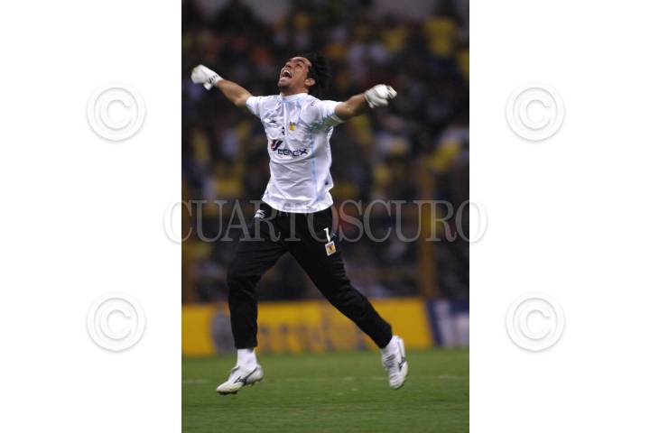 MÉXICO, D.F. 04DICIEMBRE2005.- Guillermo Ochoa, portero del América en el partido donde las águilas del América cayeron 4 goles a uno ante los Tigres de Monterrey con lo que quedaron eliminados en la primera fase de la liguilla del torneo de apertura 2005 con marcador global de América 4, Tigres 5, en el balonpié nacional. FOTO: Iván Stephens/CUARTOSCURO.COM