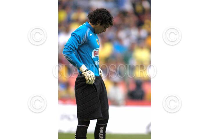 MÉXICO, D.F. 04DICIEMBRE2005.- Guillermo Ochoa, portero del América en el partido donde las águilas del América cayeron 4 goles a uno ante los Tigres de Monterrey con lo que quedaron eliminados en la primera fase de la liguilla del torneo de apertura 2005 con marcador global de América 4, Tigres 5, en el balonpié nacional. FOTO: Iván Stephens/CUARTOSCURO.COM