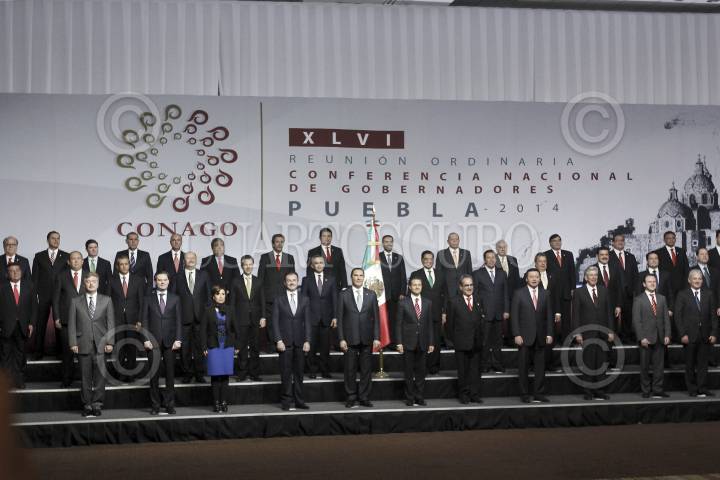 PUEBLA, PUEBLA, 26FEBRERO2014.- El presidente de la República Enrique Peña Nieto, encabezó la XLVI Reunión Ordinaria Conferencia Nacional de Gobernadores Puebla 2014 (CONAGO), en la que el gobernador de Puebla Rafael Moreno Valle, dejó la presidencia en manos de Carlos Lozano de la Torre, gobernador del estado de Aguascalientes. FOTO: HILDA RÍOS /CUARTOSCURO.COM