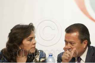 MÉXICO D.F., 26FEBRERO2013.- Ivonne Aracelly Ortega Pacheco, secretaria general del Partido Revolucionario Institucional (PRI); y César Camacho Quiroz, presidente nacional del Comité Ejecutivo Nacional (CEN) del PRI, encabezaron los trabajos de instalación del Comité intersecretarial para la atención y promoción de los derechos humanos. FOTO: IVÁN STEPHENS /CUARTOSCURO.COM