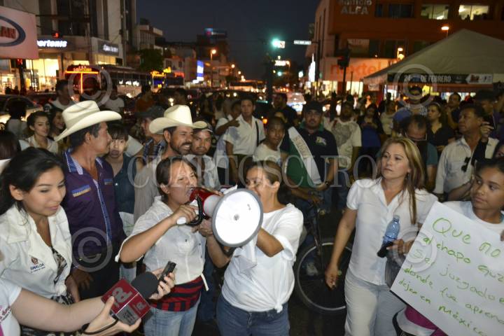 CULIACÁN, SINALOA, 26FEBRERO2014.- Unas 2.000 personas salieron a manifestarse en el centro de Culiacán, capital de Sinaloa, para pedir la liberación de Joaquín "Chapo" Guzmán, considerado por la DEA el narcotraficante más poderoso del mundo y detenido el sábado pasado. FOTO: CARLOS SICAIROS /EL DEBATE DE CULIACÁN /CUARTOSCURO.COM