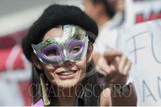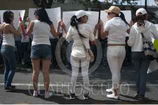 MÉXICO, D.F., 27FEBRERO2014.- Bailarinas de centros nocturnos se manifestaron frente a la sede de la Procuraduría de Justicia del Distrito Federal en protesta contra los operativos que ha realizado la dependencia en centros nocturnos por presunta trata de personas. FOTO: IVAN STEPHENS /CUARTOSCURO.COM