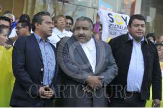 MÉXICO, D.F., 28FEBRERO2014.- Los diputados perredistas Alejandro Ojeda, Jorge Agustin Zepeda y Gabriel Godinez Jiménez, realizaron una clausura simbólica en las instalaciones de la Procuraduría Federal del Consumidor (Profeco) para exigir un alto a los cobros injustos de luz por parte de la Comisión Federal de Electricidad (CFE) y para que dejen de instalar medidores prepago. FOTO: DIEGO SIMÓN SÁNCHEZ /CUARTOSCURO.COM