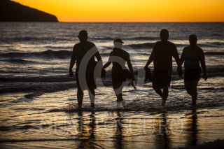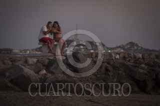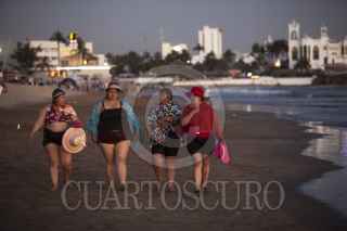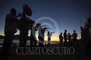 MAZATLÁN, SINALOA, 28FEBRERO2014.- Cientos de personas acuden a las bellas playas de Mazatlán para disfrutar de los atardeceres, caminar por la playa y seguir la fiesta con música de banda mientras que comerciantes aprovechan para vender distintos tipos de objetos alusivos al carnaval que vive este sitio turístico. FOTO: RASHIDE FRIAS /CUARTOSCURO.COM