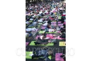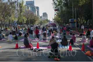 MÉXICO, D.F., 02MARZO2014.- Sobre los carriles centrales de la avenida Reforma se realizó una clase masiva de yoga. FOTO: IVÁN STEPHENS /CUARTOSCURO.COM