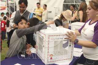 MÉXICO, D.F., 02MARZO2014.- Como parte del festejo de los 15 años del IEDF se realizó una feria infantil titulada "Feria de la Democracia" donde niños votaron el papeletas y urnas electronicas. FOTO: SAÚL LÓPEZ /CUARTOSCURO.COM