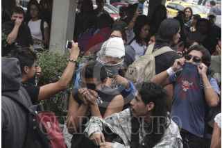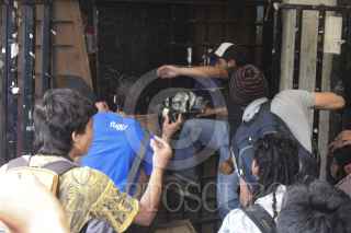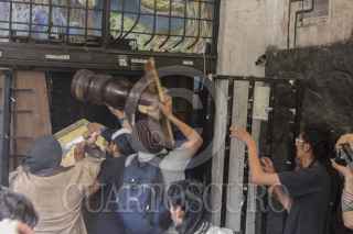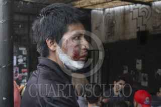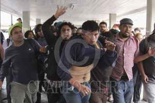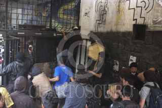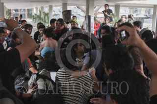 MÉXICO, D.F., 03MARZO2014.- Alrededor de las 14 horas, un grupo de jóvenes desalojaron el Auditorio Che Guevara, de la Facultad de Filosofía y Letras de la UNAM, a encapuchados que por la madrugada tomaron el lugar. Durante el desalojo, los jóvenes, que dijeron ser estudiantes de la Facultad, golpearon y lanzaron botellas al interior del inmueble. Por la madrugada, los encapuchados tomaron el inmueble y golpearon a estudiantes que se encontraban en su interior. El auditorio Che Guevara, se encuentra tomado por estudiantes desde el año 2000, luego de la huelga universitaria. FOTO: SAÚL LÓPEZ /CUARTOSCURO.COM