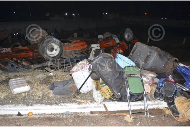 SAN MARTÍN TEXMELUCAN, PUEBLA., 04MARZO2014.- Pobladores de San Anton Pio Mihuacan que se dirigían a Chalma en peregrinación fueron envestidos por un tráiler a la altura del Km. 88+500 de la carretera México- Puebla con dirección al DF, dejando como saldo 5 muertos y 17 lesionados. FOTO: LUIS CARBAYO /CUARTOSCURO.COM