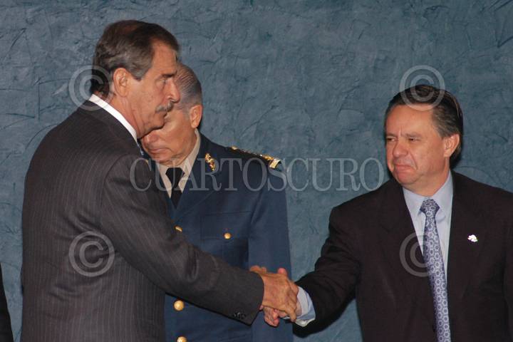 MÈXICO, D.F. 09DICIEMBRE2005.- El secretario de Gobernaciòn, Carlos Abascal Carranza y el Presidente Vicente Fox Quesada durante el primer informe de ejecuciòn del programa nacional de los derechos humanos. FOTO:Miriam Sànchez/CUARTOSCURO.COM