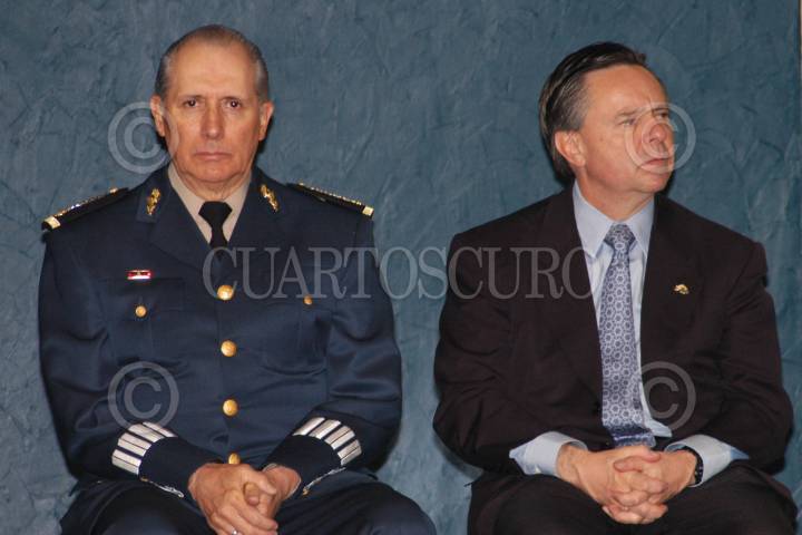 MÈXICO, D.F. 09DICIEMBRE2005.- El secretario de Gobernaciòn, Carlos Abascal Carranza y el Presidente Vicente Fox Quesada durante el primer informe de ejecuciòn del programa nacional de los derechos humanos. FOTO:Miriam Sànchez/CUARTOSCURO.COM