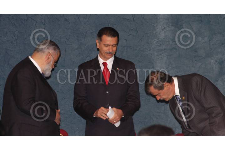 MÈXICO, D.F. 09DICIEMBRE2005.- El secretario de Gobernaciòn, Carlos Abascal Carranza y el Presidente Vicente Fox Quesada durante el primer informe de ejecuciòn del programa nacional de los derechos humanos. FOTO:Miriam Sànchez/CUARTOSCURO.COM