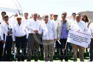 TEPALCINGO, MORELOS, 05MARZO2014.- El Secretario de Comunicaciones y Transportes, Gerardo Ruiz Esparza, y el gobernador de Morelos, Graco Ramírez Garrido Abreu, dieron el banderazo de inicio de la construcción del tramo Jantetelco-El Higuerón (Xicatlacotla), de la Autopista Siglo XXI, cuya inversión de obra es de mil 900 millones de pesos y la extensión de 62 kilómetros. En el arranque -en el kilómetro 49+300, ejido de Atotonilco, municipio de Tepalcingo, Morelos-, en el que también participaron el subsecretario de Infraestructura, Raúl Murrieta Cummings; el director general de Desarrollo Carretero, Carlos Bussey Sarmiento; alcaldes de siete municipios y 13 comisarios ejidales, el Secretario Ruiz Esparza precisó que esta obra, correspondiente al Compromiso de Gobierno 217, “es la primera nueva concesión otorgada durante la actual administración”. FOTO: CUARTOSCURO.COM