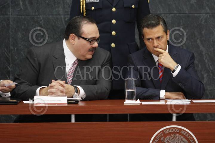MÉXICO, D.F., 06MARZO2014.- Fernando Abusaid Quinard, presidente de la Cámara Nacional de Vivienda (Canadevi), Jorge Carlos Ramírez Marín, secretario de Desarrollo Agrario, Territorial y Urbano y Enrique Peña Nieto, Presidente de México, durante la ceremonia en donde se entregó el Premio Nacional de Vivienda, en la residencia oficial de Los Pinos. FOTO: MOISÉS PABLO /CUARTOSCURO.COM