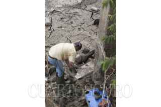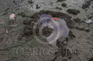 VILLAHERMOSA, TABASCO, 07MARZO2014.- El cuerpo de un desconocido fue encontrado sin vida sumergido en un fango que va formando el área seca del rio Carrizal en las inmediaciones de la colonia Indeco. El hoy occiso fue descubierto por trabajadores que realizan trabajos en la creación de un nuevo puente en la parte de abajo; autoridades policíacas tomaron conocimiento en los hechos sangrientos y se investigan posibles lineas de homicidio. FOTO: MARCO POLO GUZMÁN HERNÁNDEZ /CUARTOSCURO.COM