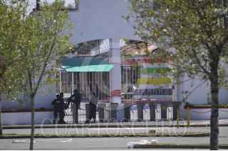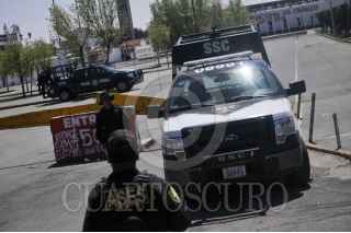 TEXCOCO, ESTADO DE MÉXICO, 08MARZO2013.- Un grupo de elementos de la Policía Federal y Estatal resguarda las instalaciones de la Feria del Caballo para evitar cualquier introducción de equipo o personal para la realización del festival Hell & Heaven Metal Fest. Dicho festival está programado para el próximo 15 y 16 de marzo con un cartel encabezado por las bandas Kiss, Guns & Roses, Korn y Twisted Sister, sin embargo el gobierno estatal planea cancelar el evento debido a que los organizadores no cumplen con las normas de seguridad necesarias, por lo mientras los organizadores continúan con la promoción y venta de boletos del evento. FOTO: DIEGO SIMÓN SÁNCHEZ /CUARTOSCURO.COM