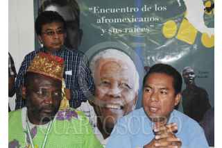 CHILPANCINGO, GUERRERO, 10MARZO2014.- La Secretaría de Asunto Indígenas Filemón Navarro Aguilar titular del SAI y el presidente de la Asociación Mexicana de los Amigos de África “ARICAMEX” el sacerdote Janvier Sidjeu firmaron un convenio de intercambio cultural, y un llevaran a cabo el primer encuentro de afromexicanos y sus raíces del 12 al 29 Marzo en Cuajinicuilapa, con la participación Marque y Azoyu de la región de la Costa Chica, informaron en conferencia de prensa. FOTO: JOSÉ I. HERNÁNDEZ /CUARTOSCURO.COM