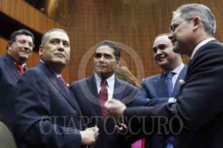 MÉXICO, D.F., 11MARZO2014.- Los diputados Manlio Fabio Beltrones, coordinador de los priistas, Silvano Aureoles Conejo, coordinador de los perredistas y Luis Alberto Villareal, coordinador de los panistas, durante la sesión en la Cámara de Diputados. FOTO: CUARTOSCURO.COM