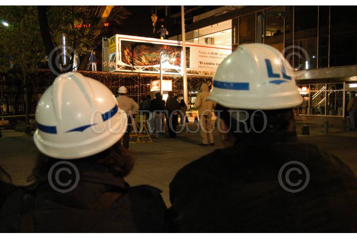 MÉXICO, D.F. 10DICIEMBRE2005.- Cerca de cien personas participaron en el traslado del mural El crèdito transforma a Mèxico de Juan O´Gorman a la altura de Tíber y Reforma donce se encuantran las nuevas oficinas del Banco HSBC. FOTO:Miriam Sánchez/CUARTOSCURO.COM