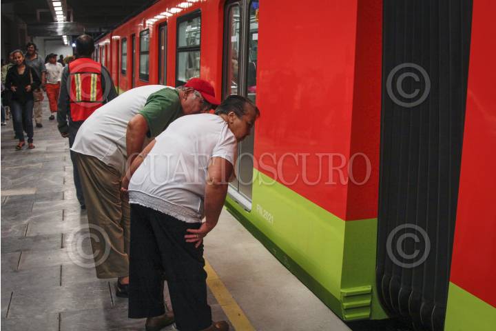 MÉXICO, D.F., 12MARZO2014.- Joel Ortega, Director del Sistema de Transporte Colectivo metro, anuncio el día de ayer, el cierre de 12 estaciones de la Línea 12 del Metro desde Culhuacan a Tlahuac, argumentando problemas en la construcción de la línea por lo cual se tendrán que realizar trabajos intensivos para su reparación. En la imagen del 2 de junio de 2011 durante un recorrido de prueba que realizó el ex Jefe de Gobierno Capitalino, Marcelo Ebrard Casaubon en la línea 12 del Metro. FOTO: ARCHIVO /ENRIQUE ORDÓÑEZ /CUARTOSCURO.COM