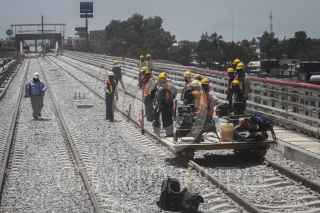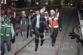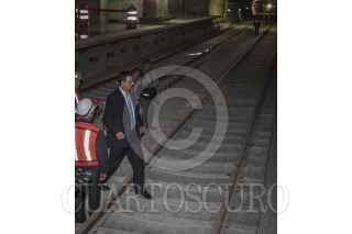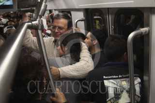 MÉXICO, D.F., 12MARZO2014.- Joel Ortega, Director del Sistema de Transporte Colectivo metro, anuncio el día de ayer, el cierre de 12 estaciones de la Línea 12 del Metro desde Culhuacan a Tlahuac, argumentando problemas en la construcción de la línea por lo cual se tendrán que realizar trabajos intensivos para su reparación. En la imagen del 2 de junio de 2011 durante un recorrido de prueba que realizó el ex Jefe de Gobierno Capitalino, Marcelo Ebrard Casaubon en la línea 12 del Metro. FOTO: ARCHIVO /ENRIQUE ORDÓÑEZ /CUARTOSCURO.COM