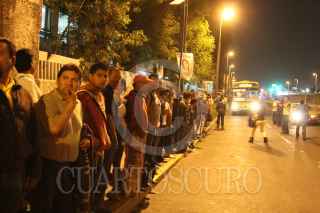 MÉXICO, D.F., 12MARZO2014.- Cientos de personas saturan las salidas del metro Atlalilco para poder tomar uno de los camiones RTP que trasladan a la gente como parte del apoyo emergente al Sistema de Transporte Colectivo Metro luego que este cerrara 12 de sus estaciones argumentando problemas en su construcción. El servicio de los camiones es temporal y gratuito para los cientos de personas que lostrasladan. FOTO: SAÚL LÓPEZ /CUARTOSCURO.COM