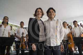 MÉXICO, DF., 13MARZO2014.- Alondra de la Parra, directora de Orquesta Filarmónica de las Américas, será la directora invitada del concierto de la Orquesta Infantil y Juvenil Renacimiento el próximo 13 de abril en Chilpancingo, Guerrero. Alejandra Frausto, directora general de Culturas Populares del Conaculta, mencionó que la importancia del proyecto Música en Armonía como parte del Sistema Nacional de Fomento Musical, es la reconstrucción del tejido social en una zona con altos índices de marginalidad y pobreza. Niños y adolescentes originarios de la región guerrerense han ensayado en promedio un año. FOTO: MARÍA JOSÉ MARTÍNEZ /CUARTOSCURO.COM