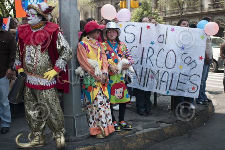MÉXICO, D.F., 13MARZO2014.- Cirqueros de distintas carpas se manifestaron a favor de la utilización de animales en los espectáculos circenses. FOTO: IVÁN STEPHENS /CUARTOSCURO.COM