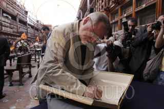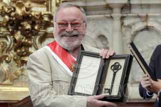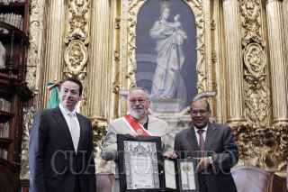 PUEBLA, PUEBLA, 13MARZO2014.- Fernando Savater, escritor, filósofo y activista español, recibió de manos del secretario de cultura del estado de Puebla, Luis Maldonado Venegas, la “clavis" o llaves de la Biblioteca Palafoxiana de Puebla, por su trayectoria literaria y aporte a la cultura. FOTO: HILDA RÍOS /CUARTOSCURO.COM