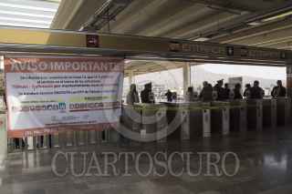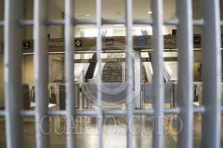 MÉXICO, DF., 14MARZO2014.- Desde el pasado 11 de marzo permanece suspendido el servicio de las estaciones que conforman el tramo elevado de la Línea 12 del Metro, o línea dorada. Joel Ortega, director del Sistema de Transporte Colectivo Metro (STC) ha confirmado que todas las estaciones de dicha línea se encuentran dañadas, principalmente en las curvas del tramo de Zapotitlán. Personal de seguridad que mantiene resguardadas las estaciones indicó que las labores de reparación se efectúan en horario nocturno, sin embargo no hay indicios de que algún tipo de reparación se esté efectuando. El servicio sólo duró un año 4 meses, desde su inauguración en el anterior gobierno capitalino de Marcelo Ebrard. Se estima que los trabajos de reparación concluyan en un aproximado de 6 a 8 meses. FOTO: MARÍA JOSÉ MARTÍNEZ /CUARTOSCURO.COM