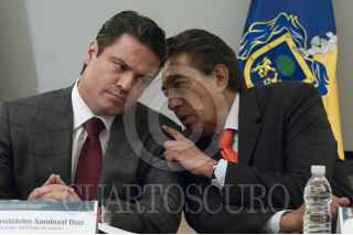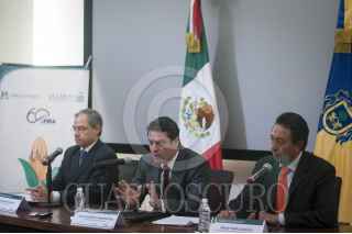MÉXICO, DF., 14MARZO2014.- Rafael Gamboa González, director general de Fira; Aristóteles Sandoval, gobernador del estado de Jalisco, y Héctor Padilla, secretario de Desarrollo Rural del estado de Jalisco, durante la conferencia de prensa para presentar el seminario internacional de seguridad alimentaria, que tiene como objetivo el intercambio de ideas entre expertos para la identificación de las mejores prácticas y políticas públicas que ayuden a garantizar la seguridad alimentaria en América Latina; dicho seminario tendrá lugar en la ciudad de Guadalajara el próximo 27 y 28 de marzo. FOTO: DIEGO SIMÓN SÁNCHEZ /CUARTOSCURO.COM