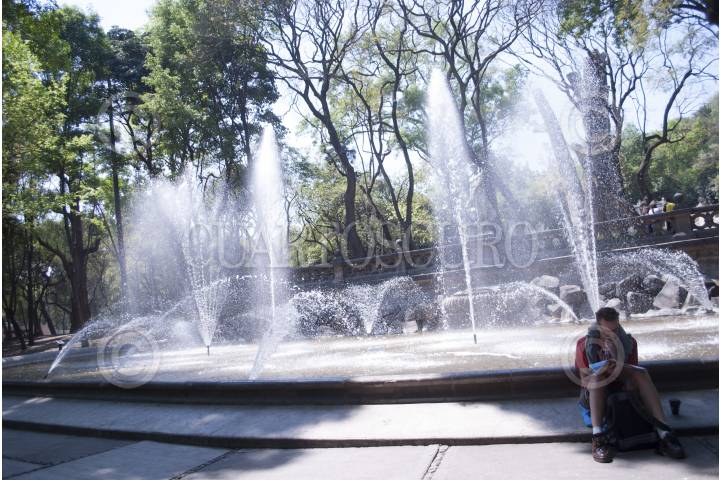 MÉXICO, DF., 15MARZO2014.- Un niño juega en su patín al lado de una fuente del Bosque de Chapultepec. Foto: MITZI BLANQUET / CUARTOSCURO.COM