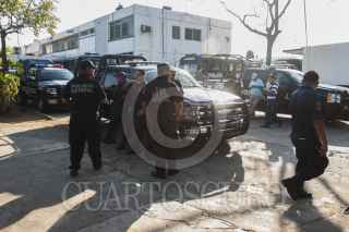 VILLAHERMOSA, TABASCO, 16MARZO2014.- Elementos de la Secretaria de Seguridad Pública, tomaron las instalaciones de esta dependencia y desconocieron como su titular al general retirado Audomaro Martínez Zapata, quien según declaraciones se les enfrento estando en estado alcoholizado. Los inconformes piden la destitución del servidor público a quien además lo acusan de trafico de influencias, prepotencia, abuso sexual e incumplimiento a promesas laborales. FOTO: MARCO POLO GUZMÁN HERNÁNDEZ /CUARTOSCURO.COM