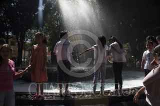 MEXICO, D.F, 16MARZO2014.- Estos días se ha registrado un incremento de la temperatura en la ciudad, por lo que los capitalinos buscan maneras para refrescarse cuando salen de paseo. En la imagen, turistas hacen una pausa para disfrutar de un helado, en el centro de la Delegación Coyoacán. FOTO: DAVID POLO /CUARTOSCURO.COM