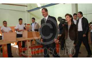 MÈXICO, D.F. 12DICIEMBRE2005.- Eduardo Medina Mora, Secretario de Seguridad Pública, el Presidente Vicente Fox Quesada y Marta Sahagún durante la visita al Centro de Tratamiento para Varones. FOTO:Miriam Sánchez/CUARTOSCURO.COM