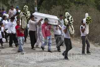 ECATEPEC, ESTADO DE MÉXICO., 17MARZO2014.- Familiares de Jordán Yandel Corte Fragoso, acudieron a dar el último adiós después de haber fallecido en la madrugada de ayer, de tan sólo tres años de edad, tras no haber sido posible extraerle la ojiva que se le incrustó al recibir una bala perdida en la cabeza. El cuerpo del menor fue sepultado en el panteón de San Andrés de la Cañada, después de una misa de cuerpo presente. FOTO: GUILLERMO PEREA /CUARTOSCURO.COM