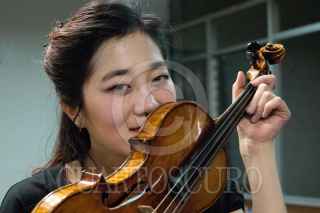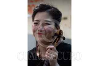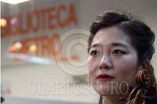 MÉXICO, DF., 18MARZO2014.- La violinista coreana, Hi Jae Park, se presentará el 19 de marzo a las 19:30 horas en el Anfiteatro Simón Bolívar como parte de las actividades del Festival del Centro Histórico de la Ciudad de México. Esta noche ofreció un pequeño concierto ante los usuarios de la estación Chabacano del Sistema de Transporte Colectivo Metro. FOTO: MARÍA JOSÉ MARTÍNEZ /CUARTOSCURO.COM