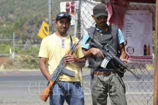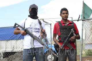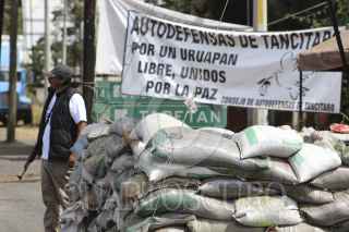 URUAPAN, MICHOACÁN, 18MARZO2014. Grupos de Autodefensa de Uruapan, en el punto de salida a la autopista de cuota a Morelia, mantienen un retén para verificar que no pasen integrantes de los Caballeros Templarios. FOTO: JUAN JOSÉ ESTRADA SERAFÍN /CUARTOSCURO.COM