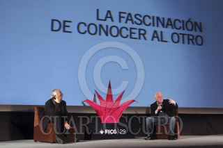GUADALAJARA, JALISCO, 20MARZO2014.- El director irlandés de cine Jim Sheridan, será reconocido en el homenaje internacional en la edición 29 del Festival Internacional de Cine en Guadalajara (FICG 29), durante el Master Class inagural ofreció una conferencia magistral denominada “La Fascinación de Conocer al Otro” en las instalaciones de Expo Guadalajara, en donde compartió experiencias tanto personales como profesionales sobre su trabajo cinematográfico a estudiantes en la apertura de actividades del Talent Campus. FOTO: FERNANDO CARRANZA GARCIA /CUARTOSCURO.COM